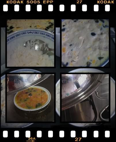 this is the cheesy prata which i love. The stall is at Yishun and it is open 24/7.golden hour for having it is at 3am. wahahhah. they will give alot of cheese. i tried to bring veron to go in the day. but the amount of cheese given in the prata is incomparable to the golden hour. and of cos we are disappointed. therefore a few days later, we met there at 1am plus to have it again. but the amount of cheese is still not that much compared to golden hour. so next time go during the golden hour... whahahahaha ![]() so now its time for Joey's cooking lesson.. today recipe: steam 3 egg with minced pork. ingredients: 4 chicky eggs, 2 century eggs, 2 salted eggs, $2.50 worth of mince meat and water ![]() step one: separate the salted egg white and egg york. squash the egg york till small pieces step two: beat the chicky egg and the salted egg till it is well mixed step three: cut the century egg into some cubes. step four: marinate the pork with soya sauce, pepper and corn flour.(amount of your liking) p/s: need not add soya sauce into the eggs as the salted egg has enough flavoring =) ![]() step five: mixed everything into a plate and stir till it is well mixed. step six: add in 1/4 cup of water and stir well. step seven: steam it in a wok for 6-8 mins(time differ with the depth of the plate) tadaa.. you may now enjoy this with a bowl of rice. Hope you guys will like the dish. try it out when u got the time... L4D <3 Labels: Chef Jojo's recipe, nini |