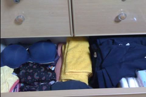 Today is a relaxing day for me. Iwoke up at freaking 3 in the afternoon and start sticking my eyes on my computer. So at 6plus, I un-glue my eyes from the computer and un-stick my butt on my sofa. I got myself up to pack my cupboard and drawer. This is a target which I set a few days ago. So I had accomplished this target by 7.15pm.my cupboard before starting to unpack. My cupboard is filled with clothes. I got to stop myself from buying. I think these clothes can last me for a few years? ![]() got everything out from the drawer n cupboard. it can easily fill up the whole queen size bed of mine. messy messy. ![]() pack the first layer for my cupboard. from clockwise I introduce: my jeans, my shorts, my home shorts, my home tees, my boyfriend shirt for bed, new aries undies, my stockings(which I dont wear now) and my short mini skirts. HAHA. one word. I like the way it is place now. ![]() Next I pack the ones to be hang up. I hope my cupboard is taller. So the clothes wont cover the first layer below. But no choice, have to be contented with this. I place my teddy bears to the top portion of my cupboard. A photo frame of my beloved and the photo albums. I threw away the piglet bolster and a small piggy. HAHA. I only kept those which meant more to me.OPS. ![]() my drawer which is so beautifully neat. hahah. I wonder this neatness can last for how long? hmmmm ![]() After all the packing, sat down on the sofa again. blogging this post and enjoy a mug of cold papaya milkshake. YUM! my favorite! ![]() |